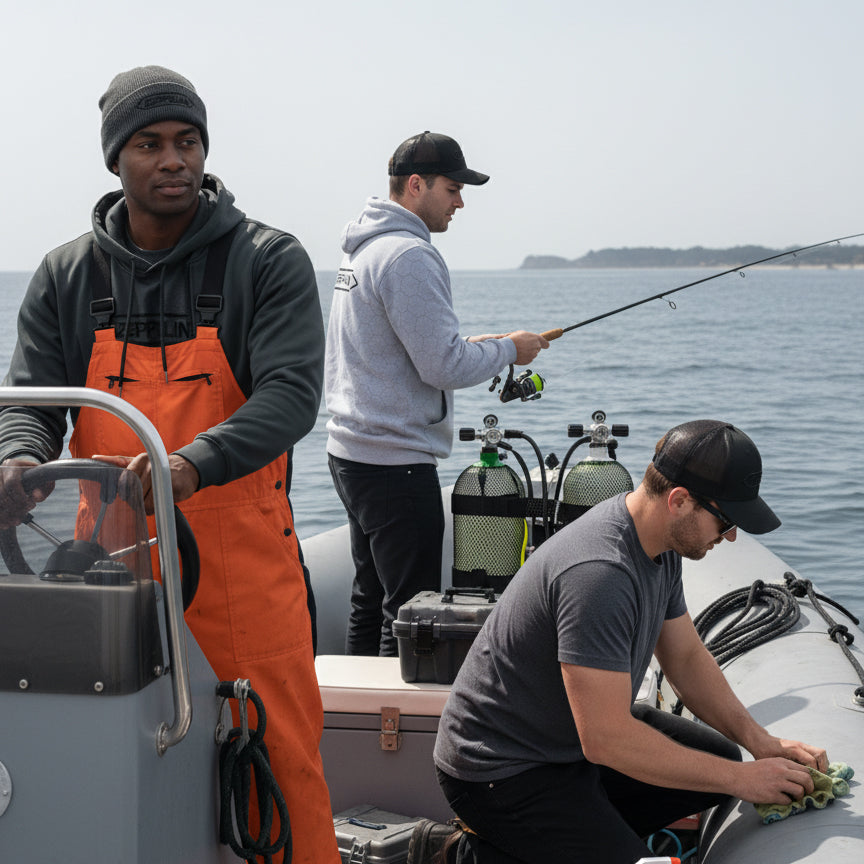 Merch My Boat is much more than just an online store. We are a true benchmark for all fishing and boating enthusiasts. Based in Brittany, a region where sailing is a way of life, we live to the rhythm of the sea and share this passion with our community. On our platform, you will find a wide range of clothing and accessories inspired by the most popular fishing brands – brands that come directly from the nautical world and the boating community. We pride ourselves on offering quality items that reflect both the style and authenticity of the maritime world, so that every angler can proudly display their passion during their outings at sea or on rivers. Welcome to the world of Merch My Boat, where the spirit of fishing meets the nautical lifestyle.